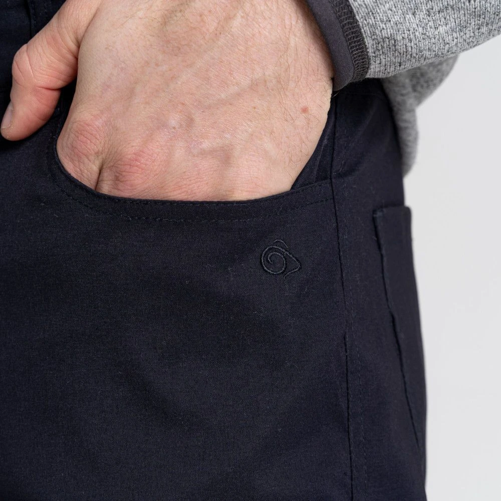 The Craghoppers Kiwi Pro 5 trousers are a practical and comfortable solution to your outdoor clothing needs. they come with a part elasticated waist, offering a secure and comfortable fit, and they are crafted from breathable, quick-drying fabric so you can wash and wear! There are 9 pockets in total, including 5 zipped & 1 mobile phone.Â