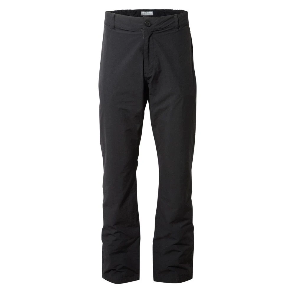 With the Kiwi Pro waterproof trousers from Craghoppers you can enjoy your outdoor adventures in the worst of the weather. It is crafted from durable polyester fabric that is waterproof 15,000mm, and breathable 10,000g/m2/24hrs, so you’ll stay dry, fresh and comfortable. It also dries quickly and has heel tape and a part elasticated waist for the perfect fit.Â