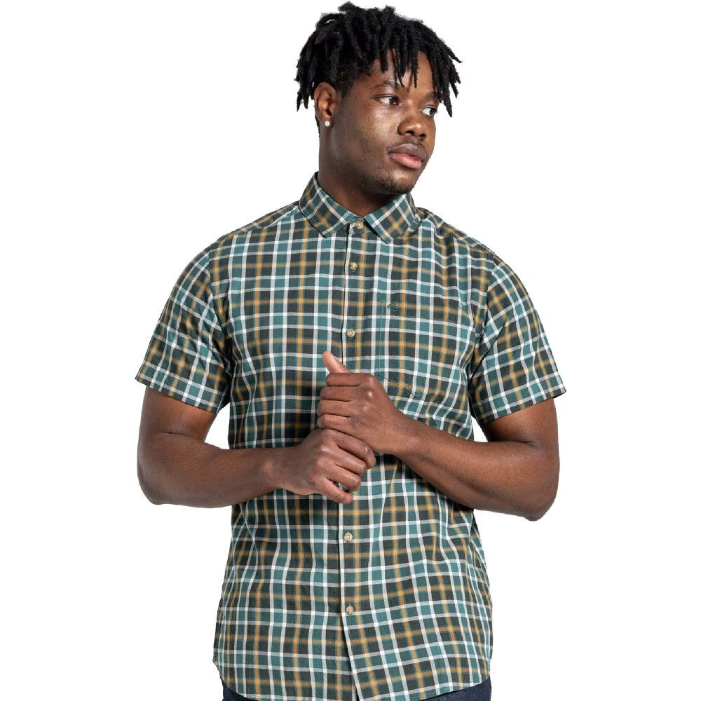 Keep yourself comfy throughout the day wearing the Craghoppers Men’s Menlo Short Sleeve Walking Shirt. Made of 100% plant based bamboo cotton blend yarn, this walking shirt is composed of 70% viscose and 30% cotton. It has one chest pocket with signature brand detailing on the front. This well-designed shirt also comes with sunglasses wipe and drying loops for your convenience. This plaid short-sleeve shirt is perfect for all kinds of occasions.