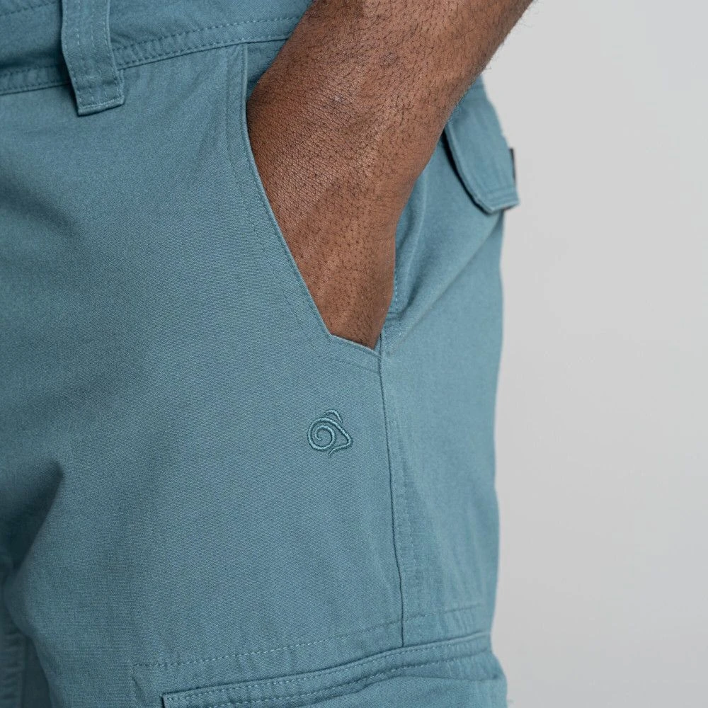 These relaxed cotton cargo shorts from Craghoppers are the perfect garment for your outdoor summer adventures. They are crafted from 100% Better cotton twill canvas which is durable for comfortable and soft. They feature the classic styling with cargo pockets to both legs and have a fixed waist with belt loop. throw these on with a t shirt and walking boots and you’re away.Â