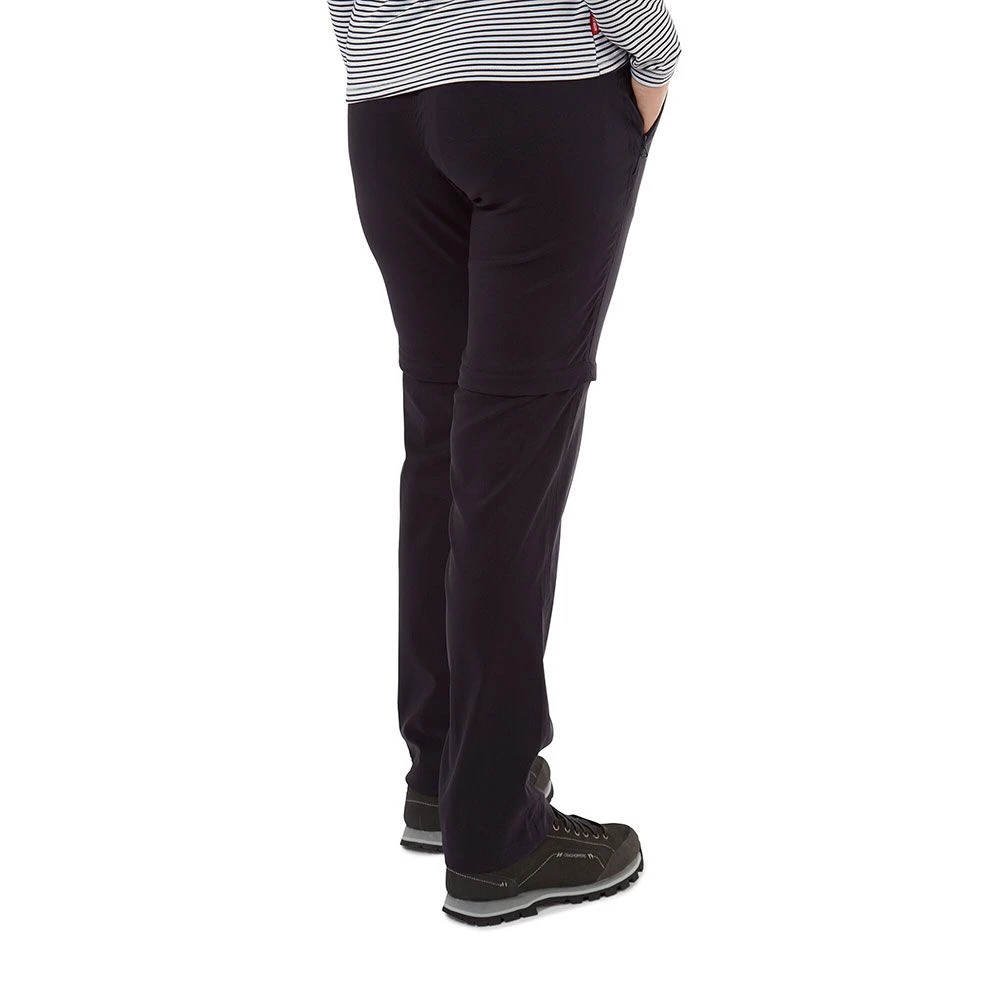 The Craghoppers Women’s Kiwi Convertible Nosi Defence Trousers are a fantastic addition to any walker’s wardrobe. With the fantastic full stretch outdoor trousers giving you the edge in the outdoors, these Kiwi Pro Convertibles go above and beyond by offering the change of length with a quick zip change around the knee changing these into shorts. A comfortable and practical, Versatile look are a fantastic choice for all round use whether its summer or winter.
