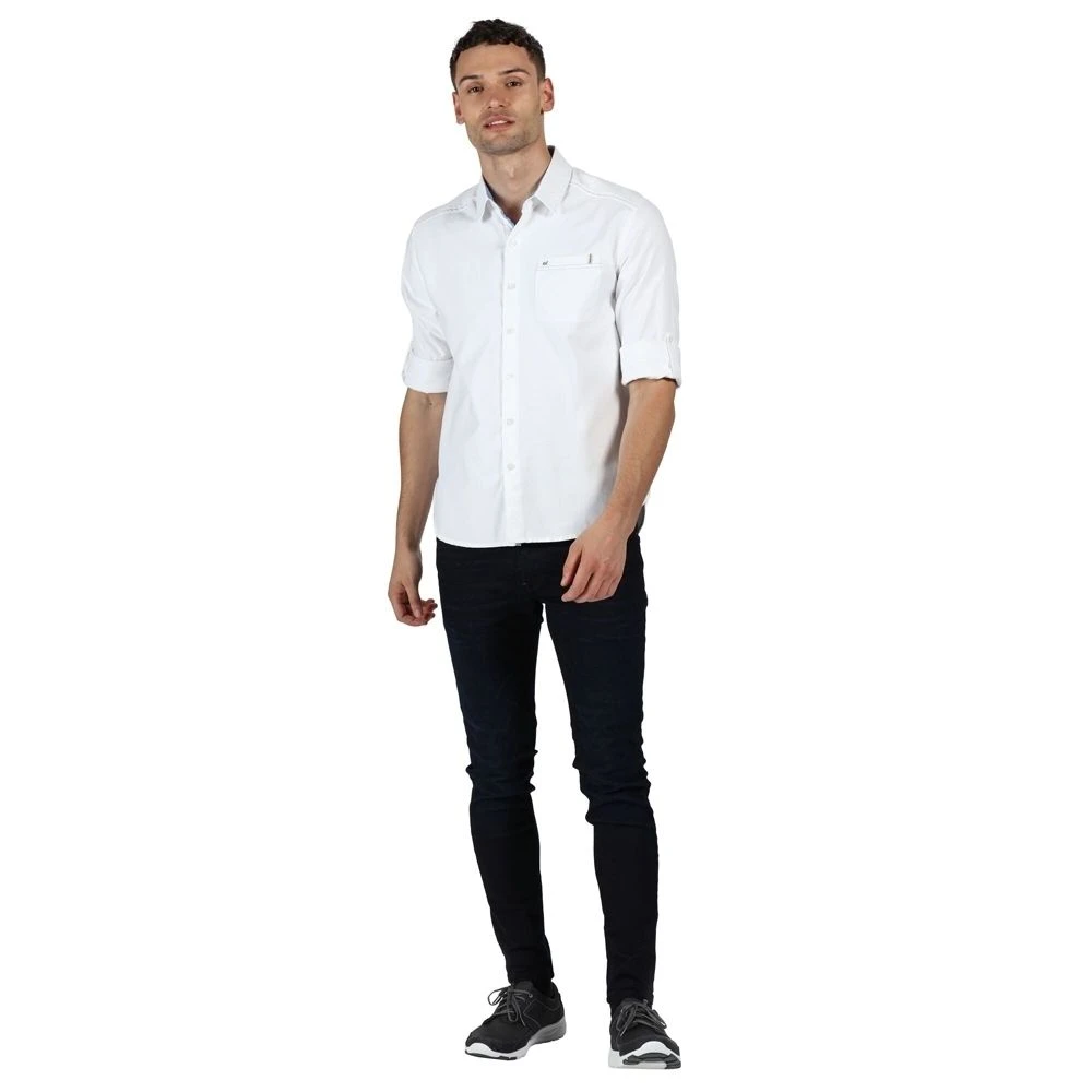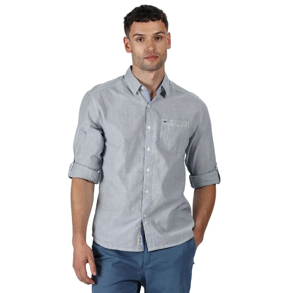 Get the perfect formal look for your next meeting or conference session when you dress up in this Regatta Men’s Banning Cotton Oxford Long Sleeve Shirt. The shirt is designed using a blended fabric that is lightweight and feels soft against the skin. The coolweave shirt easily wicks away sweat and odour. The mini stripe pattern adds a classy appeal to it.
