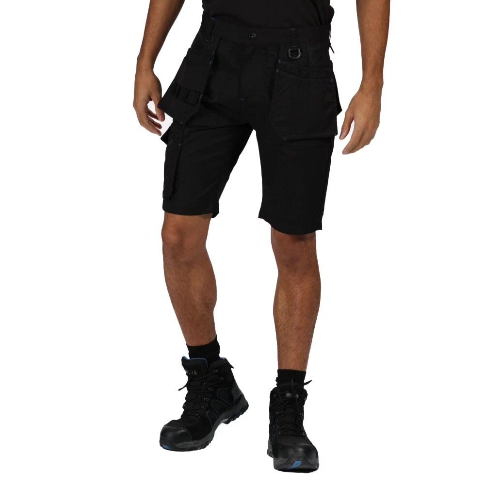 Your ideal go-to outdoor clothing, these Regatta Professional Men’s Incursion Work Shorts are designed for tough outdoors with features like water repellent finish and durable combined fabric of 35% cotton and 65% polyester. Feel comfortable with their functional features like mobile phone and multi-functional tool pockets on the legs. These shorts come with holster pockets with two sub pocket divisions with an easy fold feature. There is ample storage space with 1 side cargo pocket and 2 front pockets along with 2 rear pockets to store things while on the go. Better movement is ensured with reinforced crotch seam and triple stitched seams throughout.