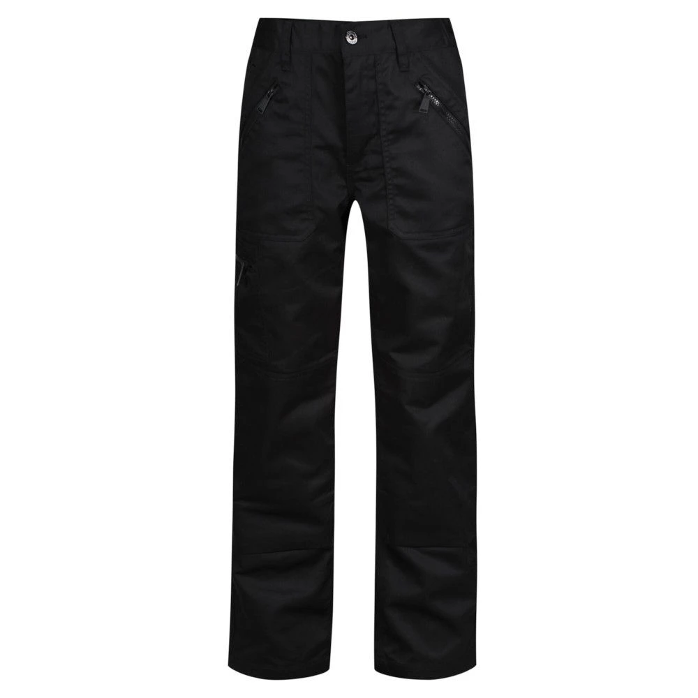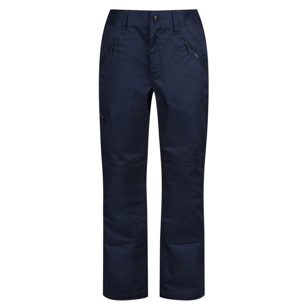 Designed for women, the Regatta Professional Work Trousers are made of hardwearing polycotton fabric, offering breathability, durability, and comfort. An elasticated waist with belt loops offers a comfortable fit and the zip fly opening provides ease in wearing the trousers. The jacket provides adequate stash space for tools and belongings with its 2 front pockets, small coin pockets, multi zip pockets, back pockets, and side zippered pockets. The reinforced seams feature triple stitching providing strength.